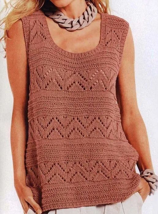Ажурные узоры придают изделию легкость и изящность, а жаккардовый рисунок добавляет нотку изысканности. Такой топ будет чудесно смотреться как с джинсами, так и с легкой юбкой. В нем вы почувствуете себя неотразимой и женственной в любой ситуации.