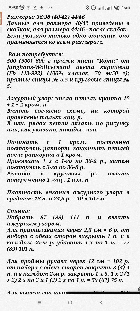 Этот карамельный топ с ажурным узором – настоящий хит летнего сезона! Связан спицами, он идеально подходит для женщин, желающих добавить в свой гардероб нечто воздушное и стильное.